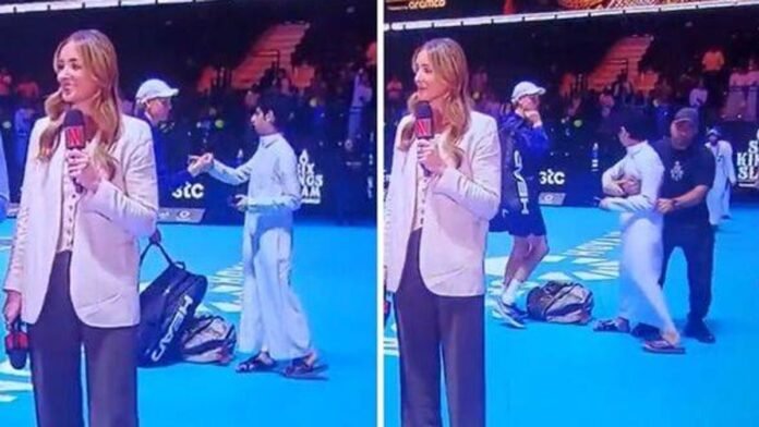 A spectator was escorted off the court by security personnel for approaching world No. 2 tennis player Jannik Sinner during the Six Kings Slam in Riyadh. Following his impressive 6-2, 6-3 win against Stefanos Tsitsipas in the first match, Sinner was met by a young fan who seemed to be requesting his jacket after the game.